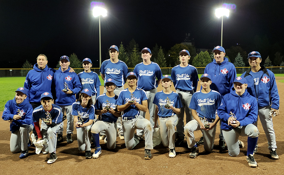 The Blues met Leaside in the championship round and needed to win both games (7 inning game) to win the TBAs. They won their first game 11-5 and was leading 7-6 with 2 outs in the 2nd to last inning. On the next pitch, the batter grounded to the pitcher who fielded it but threw it over the 1st baseman’s head for an error.